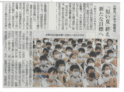 ※始業式の様子が神戸新聞(8月18日朝刊)に掲載されました。