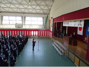 午後、令和3年度入学式を行い、新たに7年生112名を迎えました。今日から始まる中学校生活に対し、きらきらと目を輝かせている姿が印象的でした。
