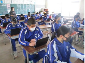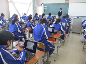 旭丘中学校では、全教科において、先生からの教材の提示や生徒の調べ学習など、大いに活用することとしています。