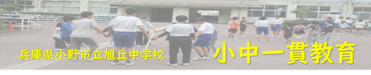 旭丘中学校の校区には、3つの小学校があります。小野市立中番小学校、小野市立下東条小学校そして小野市立大部小学校の3小学校です。本年度は、「小中一貫教育」をかかげ、小中学校の間で様々な取り組みが進められています。