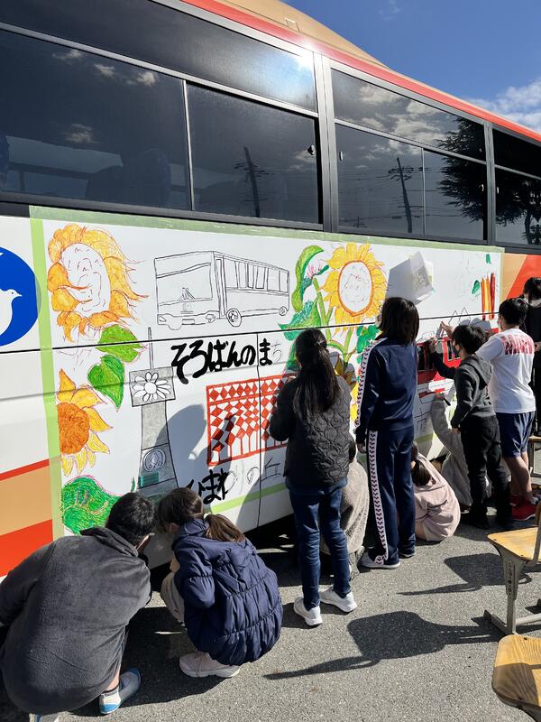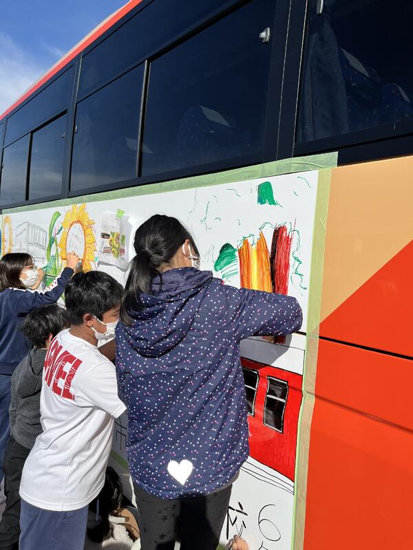 12月12日(月)、6年生の児童が、神姫バスの創立95周年記念事業「私たちの街をラッピングバスで広めよう!」に参加し、神姫バスに小野市をアピールするイラストを描きました。下書きから色付けまで、全員で協力して完成させることができました。ラッピングバスは、3月まで高速バスとして運行されます。市場小西側の県道を通るかもしれません。ぜひ、見つけてみてください。