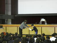 2学期終業式 投稿日時 : 2025/12/23 校長 12月23日(火)に2学期終業式を行いました。校長先生のお話の中で、各クラス一人ずつの児童が2学期のミッションの報告をしました。「できるかもにチャレンジしよう!」というミッションです。マラソンの練習から本番のこと、授業中の発表のこと、音楽祭のこと、自然学校のこと等、心配だったり心がくじけそうになったりしても頑張ってチャレンジした経験を堂々と発表してくれました。校歌を大きな美しい声を響かせて歌った児童たち。その後は教室で担任の先生からあゆみを渡してもらい、2学期の頑張りをもう一度振り返りました。