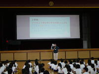 10月7日(火)「笑ってタメになる!ボルドボルズの爆笑 サイエンスショー」がありました。身近な物を利用した力の実験や空気砲を使用した空気の実験などで楽しく分かりやすく実験をしていただきました。空気砲の実験では子どもたちに向けて空気砲を放ってもらい、大盛り上がりの楽しい時間となりました。