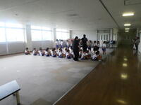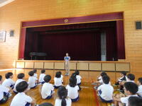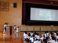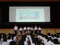 7月18日に終業式を行いました。1学期の校長先生からのミッション「自分や友だち、先生、家族、地域の人の良いとところを見つけよう」について、各クラスから一人ずつ前に出て発表してもらいました。それぞれに良いところをたくさん発見してくれていて、みんな自信をもって堂々と発表していました。校長先生からは夏休みはチャンスがたくさんあるのでぜひ何かにチャレンジして自分をチェンジしてほしいという話がありました。長い夏休み、体調に気を付けて有意義な時間を過ごしてほしいと思います。
