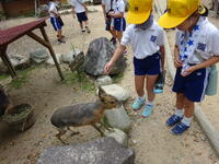 社会見学で神戸どうぶつ王国へ行きました。国語科で「どうぶつ園のじゅうい」の学習をしていて気になったことを、実際に獣医さんにインタビューすることができました。みんな興味津々で、質問がたくさん出て、時間が足りなくなるほどでした。午後からは、描きたい動物を探して見学しました。暑い一日でしたが、たくさん歩いてよくがんばりました。