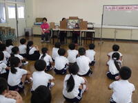 「あおいふうせん」という紙芝居の読み聞かせをしていただき、税金の使われ方や大切さについて考えることができました。