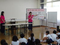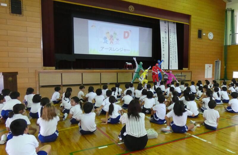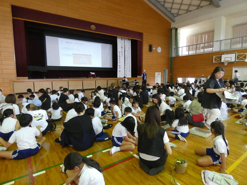 1~3年生はEARTH隊員の方から災害発生時の対応について学びました。子ども達は、防災に関するクイズや防災グッズを作る活動を通して自分の命を守るためにできることを一生懸命考えていました。この親子人権防災教室で学んだ内容をもとに自分たちにできる「防災」を考えていきます。