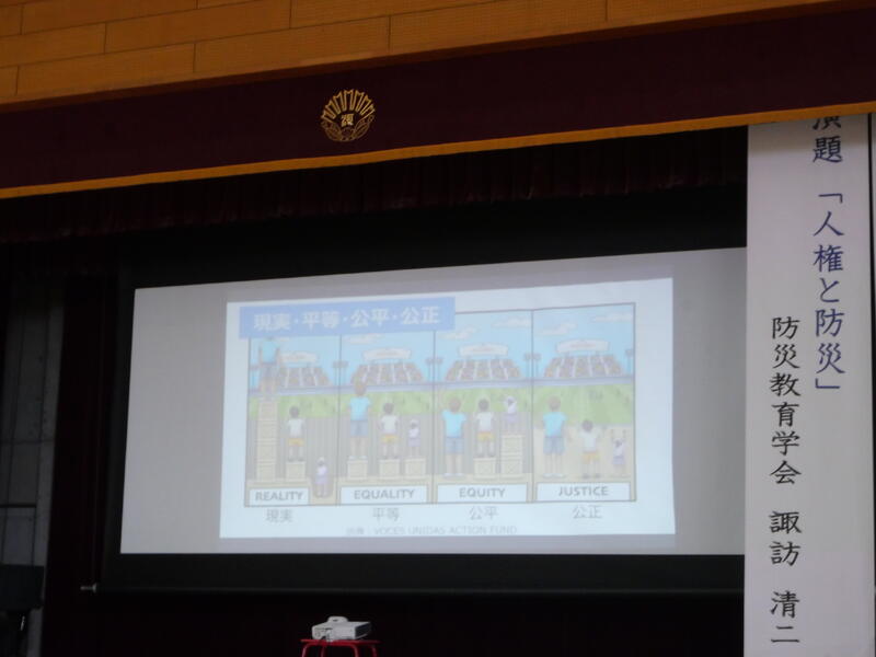 4・5年生は防災教育学会 諏訪清二先生をお呼びし、「人権と防災」について考えました。災害時にはたくさんの尊い命が奪われる中でも、災害関連死の割合が大変多いことを知りました。災害関連死を減らすために、どんな人でも「人が人らしく生きるために」自分たちにできることを一生懸命考えました。また、「答えは、一つではないからこそみんなで相談すること」の大切さを教えていただきました。