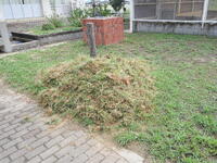 9月11日(木)朝、全校生で草引きをしました。昨日からの雨で運動場の草がとても引きやすくなっていたのもあって、15分間で大量の草が引けました。縦割り班に分かれての活動でしたが、どの班も協力して熱心に取り組んでいました。体育委員会の5年生が一輪車で何往復もして草を運んでくれましたが、どの一輪車の上も草の山になっていました。