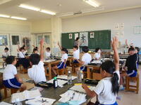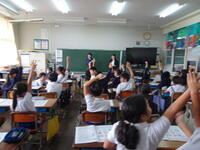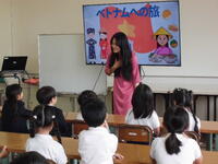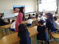 ベトナムの方に来ていただき、ベトナムの国旗や町の様子、食べ物、服装などたくさんのお話を聞きました。