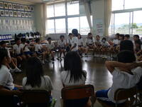 和太鼓クラブは「三宅太鼓」という曲目を演奏しました。リズムを覚えるだけでなく、ダイナミックな動きやかけ声も意識して練習してきた成果を披露してくれました。演奏後、全校生から自然に大きな拍手がわきおこりました。