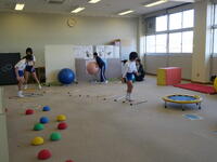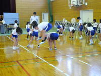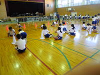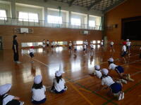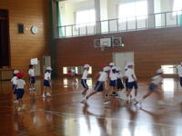本日の元気アップの様子です。室内でも様々な運動を行ってます。縦割り班での関わり合いの中で、絆も深まっています。
