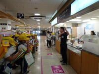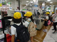 10月3日にイオン小野店に社会見学に行きました。社会科で「店ではたらく人」の学習をしています。インフォメーションやバックルームの様子を見学したり,店内の工夫を発見したりしました。最後にセルフレジでお買い物体験もしました。