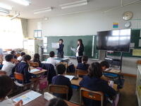 国語の「スーホの白い馬」の学習の一環として、モンゴル出身のスーホさんに来ていただきました。モンゴルの紹介や遊び、馬頭琴の演奏などを聞かせていただきました。馬頭琴の素敵な音と一緒に踊ったり、羊の骨を使ったモンゴル伝統の遊びをしたりして、外国の文化にふれる貴重な時間となりました。