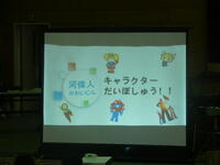 11月29日(金)の児童朝会で、河合小学校の目指す人物像「河偉人」さんのキャラクター決定の発表がありました。応募総作品数約160点の中から、児童会で4点を選び、全校生に投票してもらいました。最終的に決まったキャラクターに残り3点の細かい部分をつけ足して完成させました。