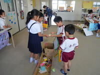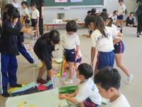 小学校区内の3つの子ども園の年長さんをお迎えして、「おもちゃランド」を開催しました。2年生は、自分たちで考えたおもちゃを使ってお店を開き、店員さんになりきってお客さんに丁寧に遊び方を教えていました。懐かしい先生にも出会うことができ、楽しいひとときとなりました。