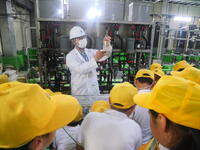 バスを降りるとすぐにいい匂いが漂ってきて、みんな興味津々で工場見学が始まりました。しょうゆの作り方について実際に見て、学習することができました。