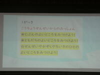 10月18日の全校朝会で、河合小学校の児童が目指す人物像のネーミング発表をしました。
