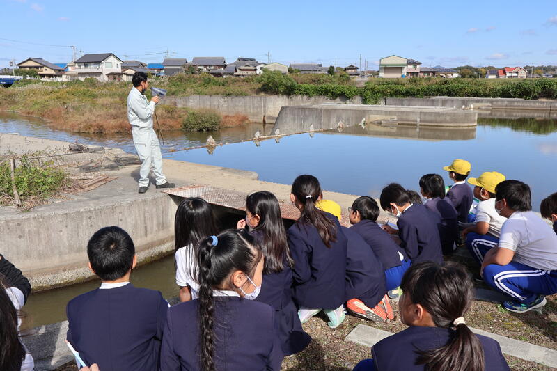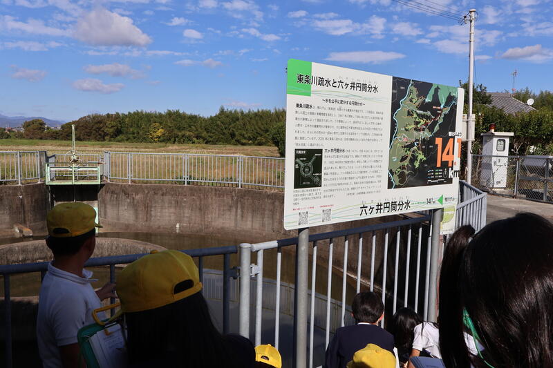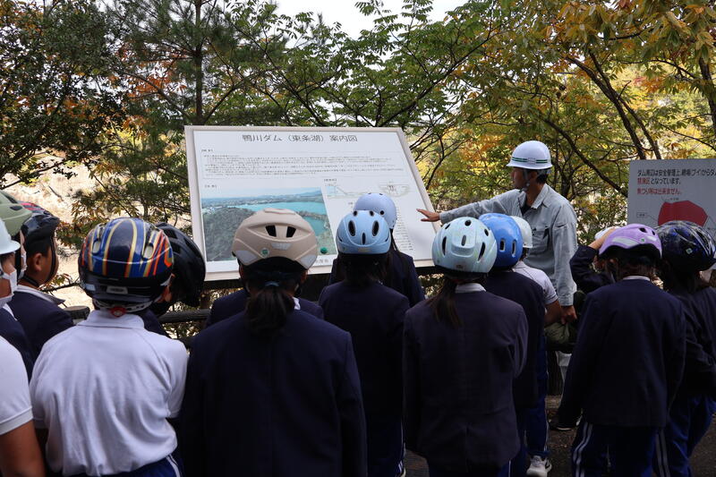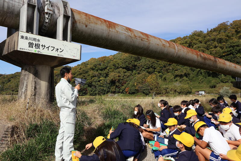 11月11日(火)に、社会科「地域を支える水」の学習で、「東条川疏水」の現地を見学しました。水の流れを肌で感じ、疏水のスケールの大きさに圧倒されました。また、鴨川ダムを建設する際に土井集落が湖底になったと聞き、とても驚きました。私たちが毎日使っている水や農作物を育てるための水は、当たり前にあるものではなく、集落の人々の理解と協力があり築きあげられてきた歴史と多くの努力によって守られてきた大切なものだと分かりました。今回の現地学習を通して、水を大切にする気持ちがさらに強くなりました。