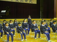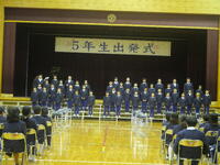 3月23日に出発式を行いました。5年生は、4年生の児童と保護者、先生方に見守られながら、入場から退場まで成長した姿をたくさん見せてくれました。長い時間をかけて自分自身と向き合って考えた「本音」を堂々と語り、「ひまわりの約束」を心を込めて歌いました。きっと中学校舎でも河合小中学校の6年生として活躍してくれることと思います。