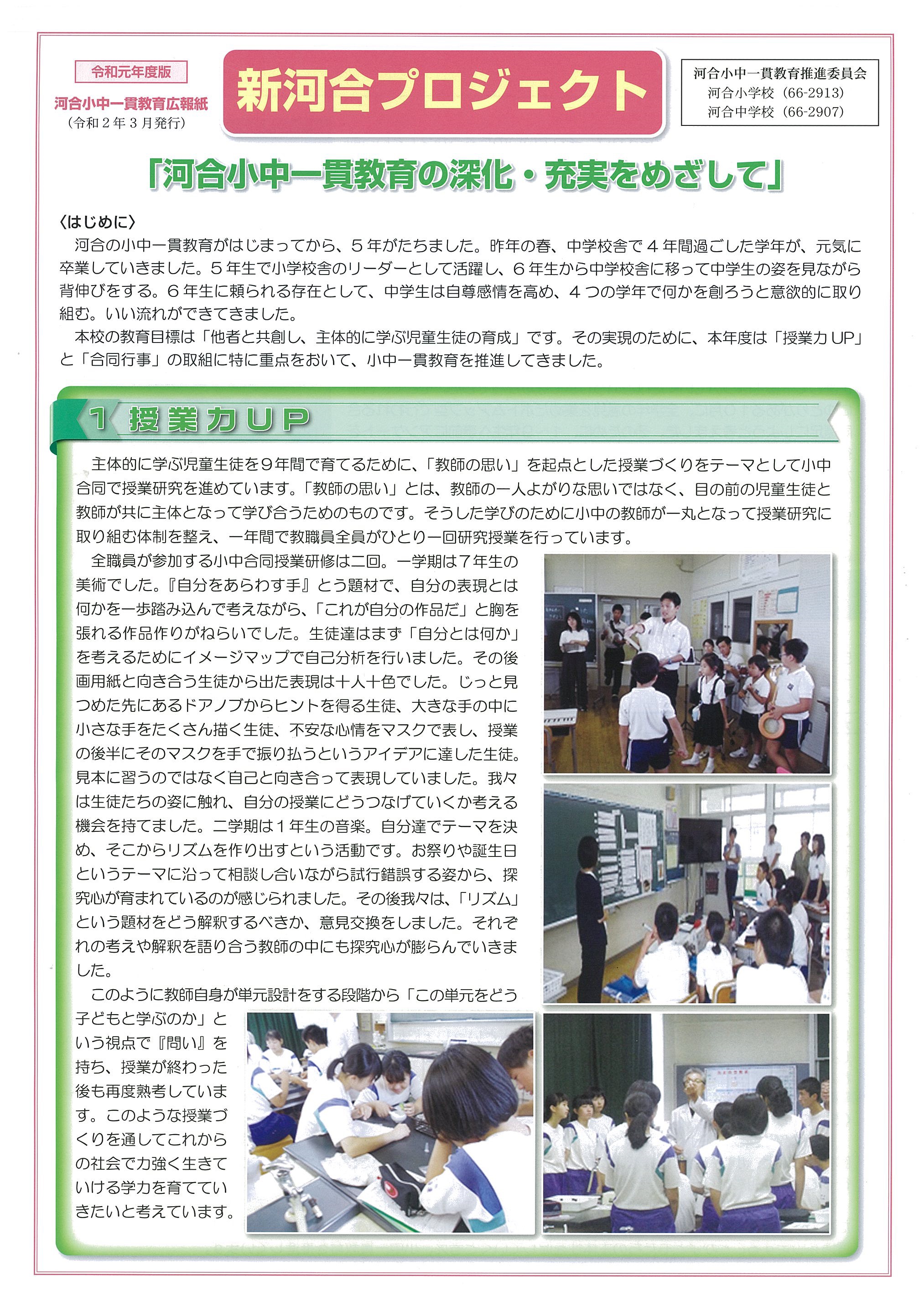 小中一貫教育広報誌「新河合プロジェクト」
