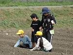 5月に植えたさつまいもが、大きく成長して、待ちに待った収穫の日がやってきました。今回もきすみの営農のみなさんのご協力のもと、傷つけないように芋を掘る方法を指導していただき、作業を開始しました。しばらく雨が降っていなかったのもあり、土が大変固い状況でしたが、営農さんの手助けもあり、立派に成長したさつまいもを張り出すことができました。自分のお気に入りのさつまいもを手にして満面の笑みで見せてくれました。