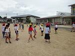 なかよし班ごとに分かれてドッジボールや鬼ごっこなどをして、全学年で交流しました。