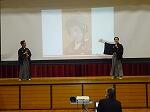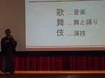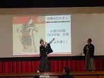歌舞伎俳優の片岡りき彌(かたおか りきや)さん、中村翫政(なかむら かんせい)さんをお招きし、歌舞伎の歴史や女方を演じるといに心掛けていることなどについて話を聞きました。また、見得の演技体験もあり、子ども達も楽しく歌舞伎について学ぶことができました。