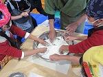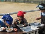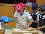 コロナ感染対策のため、児童によるそば打ちの体験を中止していましたが、今年は実際にそば打ちから自分で打ったそばを食べる体験までさせていただきました。ぷらっときすみの様のご協力、ご指導のもと、そば粉から練り作業、伸ばし作業を経て麺状に切る作業まで、実際のそば打ち道具を触らせてもらいながら、そばを作っていきました。できあがったそばは、職人さんのそばと比べてとても太い麺になりましたが、自分たちで苦労して作ったそばはとてもおいしかったようで、笑顔で完食していました。