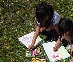 春の生き物や植物を見つけ、クレパスと絵の具を使ってスケッチしました。