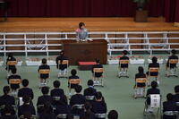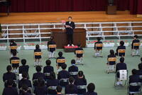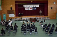 10名の1年生は、保護者や地域の皆様、在校生、先生方に見守られながら元気に入場し、最後まで立派な態度で入学式に参加しました。担任の先生から名前を呼ばれ、大きな声で返事をして、校長先生と握手をしました。
