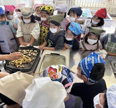 収穫後は、育てたサツマイモを使って大学芋を作りました。自分たちで育て、調理したサツマイモは、いつも以上においしく感じられたようです。