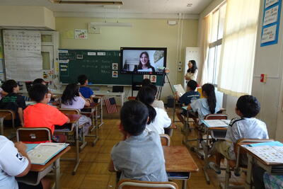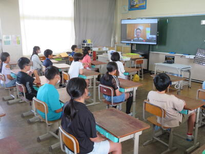 数年前から、市内小学校すべての高学年クラスをオンラインで繋ぎ、大学の先生にご指導いただきながらプログラミング学習を年間3回行っています。今回のプログラミング学習では、5年生は「音付きアニメーションづくり」、6年生は「ボタンを押して画面上の点を動かすプログラミング」に挑戦しました。子どもたちは、実際の動きを想像しながらchromebookを使ってプログラムを組んでいきます。少々難しい内容でしたが、子どもたち同士教え合い、助け合いながら一生懸命取り組んでいました。イメージ通りの動作を確認できた時は、とてもうれしそうにしている子どもたちでした。