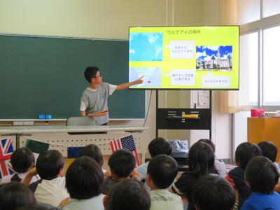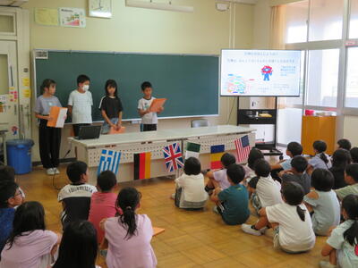 全体会を開いた後に、各クラスごとに分かれてそれぞれの国について教えていただきました。そして、体験後には再び全体で集まり、教えていただいたことや体験したことを他の友達に伝えました。