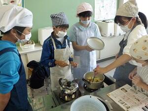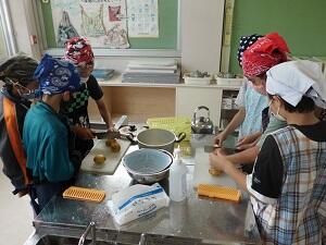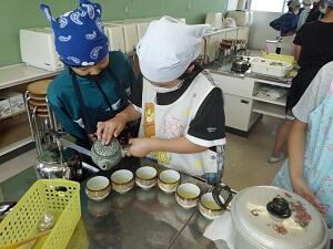 5年生になって、新しく家庭科の学習が始まりました。初めての調理実習の内容は、「おいしいお茶を入れ、おいしくジャガイモをゆでよう!」です。慣れない手つきで包丁を扱ったり火傷に気をつけたりしながら、無事にミッションをクリアし、みんなでおいしくお茶とおいもをいただきました♪
