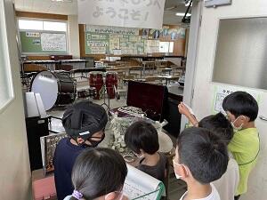 1年生と2年生で学校探検を行いました。学校の中でも行ったことのない場所へ、ドキドキしながら、探検をしました。理科室のガイコツや音楽室の様々な楽器を見て、とても楽しく過ごせました。