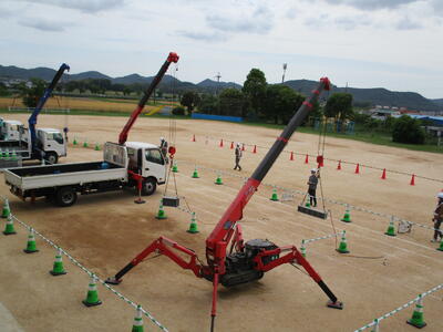 5年生は、高所作業車に乗って3階の高さを体験したり、カニクレーンをリモコンで操作したりと、大満足な体験となりました。