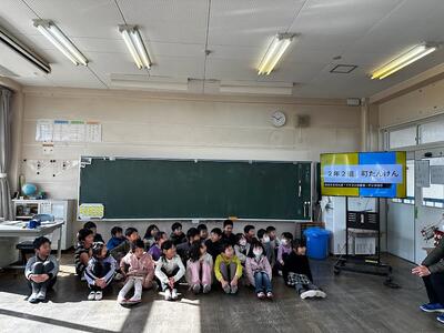 探検した場所で学んだことをクイズにして、1組は2組に、2組は1組に発表をしました。