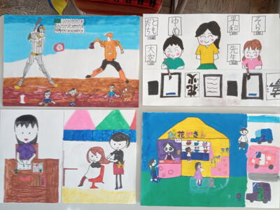 本番の発表に向けて、文章を推敲し、写真にあるような自分の将来の夢の挿絵を作り、リハーサルを行っておうちの人の前で堂々と発表できるよう準備をしています。参観日は児童の発表を楽しみにしてもらえたらと思います。
