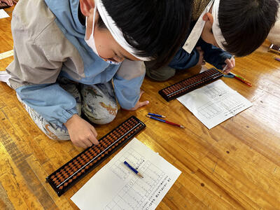初めてそろばんを使ったときは、「難しい。」や「できるかな?」などと不安そうな声が聞こえてきていました。ですが、一人ひとりが上手にそろばんを使って計算することができました。