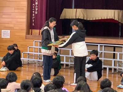 6年生から5年生、在校生への引継ぎ集会が行われました。