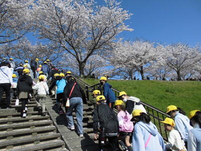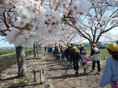 4/10、住永町の桜づつみへ全校生で出かけました。すばらしい天気のもと、きれいに咲き誇る桜を楽しむとともに、春の訪れを肌で感じることができました。