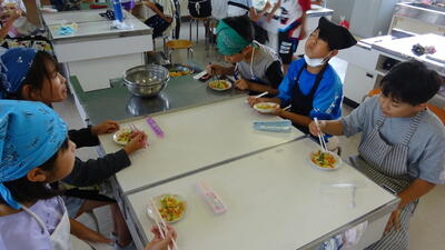 5時間目に行ったふり返りでは、これから食べる給食や家で食べるご飯を美味しく残さず食べたいと発表する児童の姿が見られました。