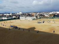 12月12日(金)の体育科授業のようす。早朝から吹く寒風の中、「持久走」で頑張っています。徐々に心肺や筋力の限界がおとずれますが、自分を奮い立たせ、力の限り走っています。