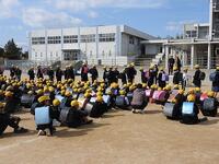 令和7年度の登校班長から令和8年度の登校班長に、登校旗が引き継がれました。1年間の感謝を込めて、6年生にありがとうを伝え、新しい登校班で安全に登下校できるよう決意をもつ日となりました。