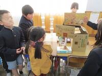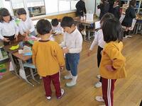 小野東幼稚園の園児が来てくれました。2年生が、生活科で作ったおもちゃでおもちゃ屋さんを開いて、交流しました。幼稚園のお友だちも、景品のお土産をたっぷりもらい、笑顔で帰っていきました。