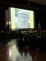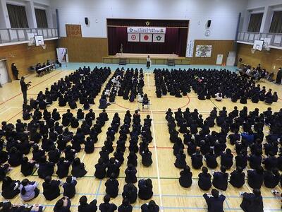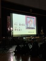 校章旗の引継ぎ、50年の歩みの振り返り、クイズ、ひがしん登場、井上直さんによる講演、小野中学校吹奏楽部の演奏会と盛りだくさんの内容でした。
