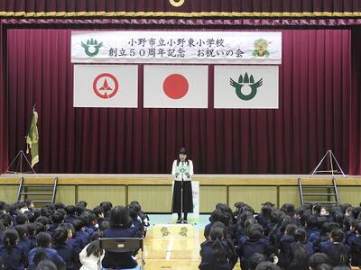 2月25日に小野東小学校が生まれて50年のお祝いの会をしました。