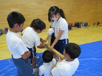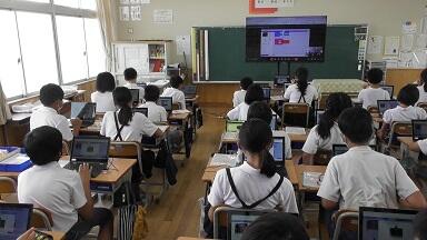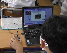 5・6年生が、プログラミング学習をしました。 市内他校の児童とオンラインで同時に学びました。5年生は自分の作ったプログラムで、マイクロビットという機械から音を鳴らしたり、6年生はセンサやマイクを使って反応するシステムを作りました。