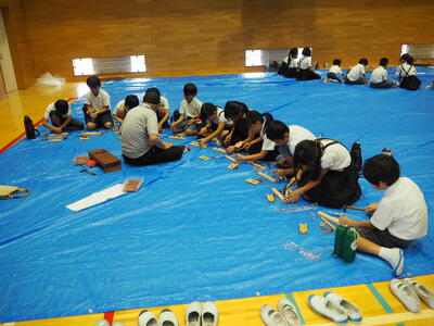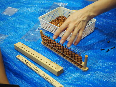 播州算盤工芸品協同組合の方々に指導していただき、そろばん作りを行いました。